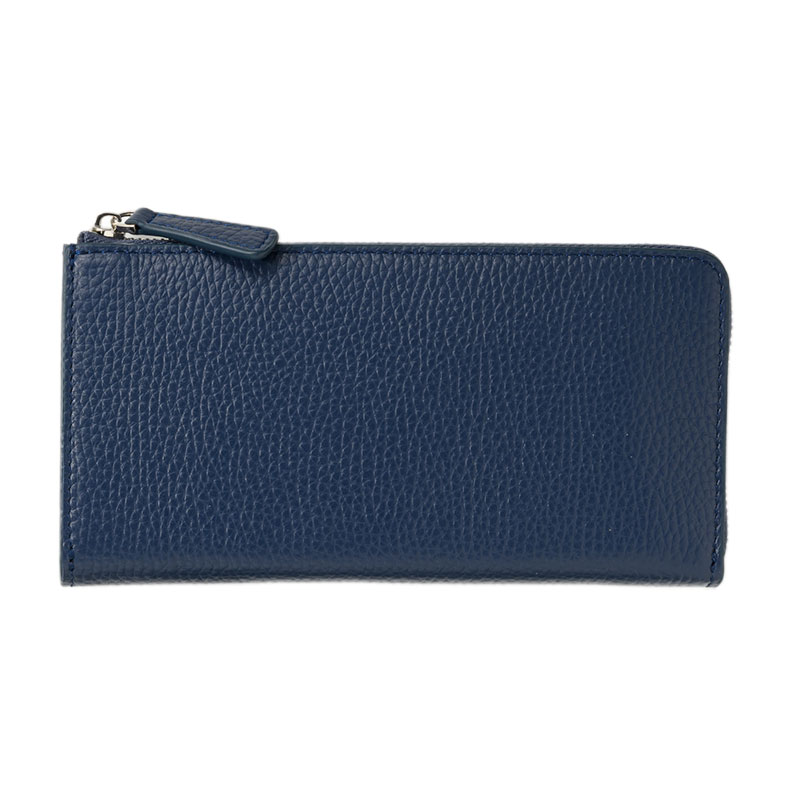 お札サイズに合わせたコンパクト設計のL字ファスナー長財布。横差しカード段により縦9cm×横17.5cmを実現し、細ファスナー採用で厚さ約2cmとスリム。マチが大きく開くため、小銭・カード・お札の出し入れがスムーズです。裏面にはICカードポケットを備え、改札もタッチで通過可能。内側にはMILAGROのロゴをシルバー箔であしらっています。