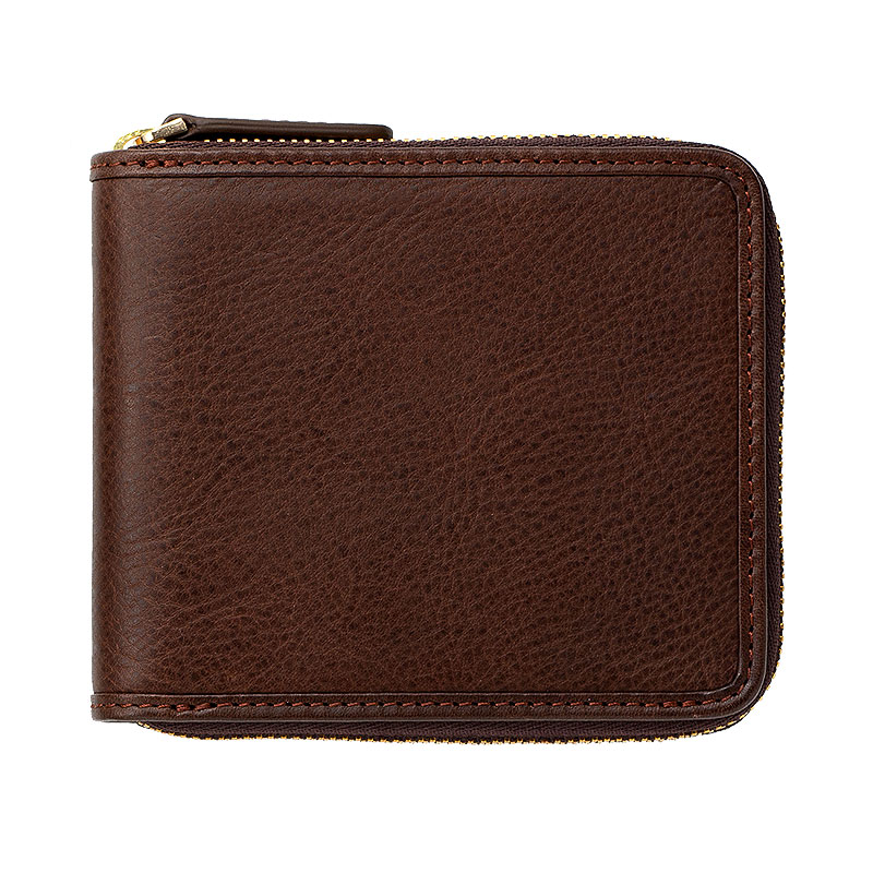 イタリアの伝統技法によるバケッタレザー使用。安心のラウンドファスナー式でしっかり収納出来る二つ折り財布です。