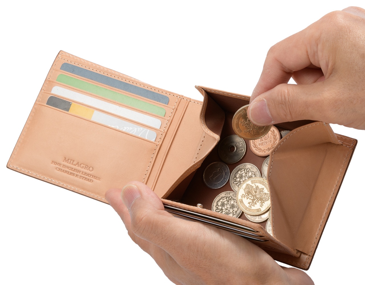 MILAGRO 英国C. F. Stead社製レザー・二つ折り財布 小銭入れ付き