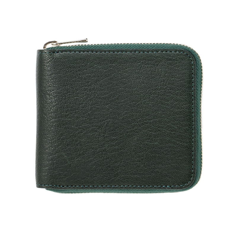 存在感のある山羊革を使ったラウンドファスナーの2つ折り財布