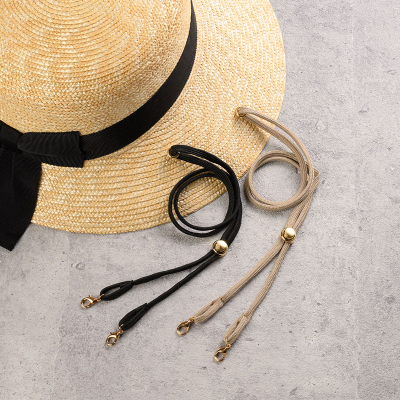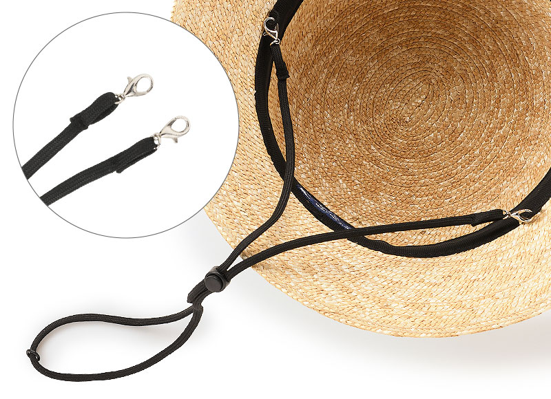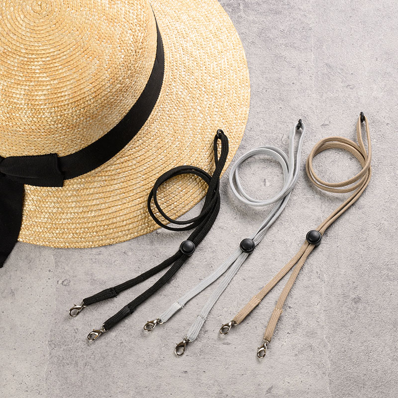 帽子の風飛び防止用に最適なあご紐です。レバー付きフックで一発装着!