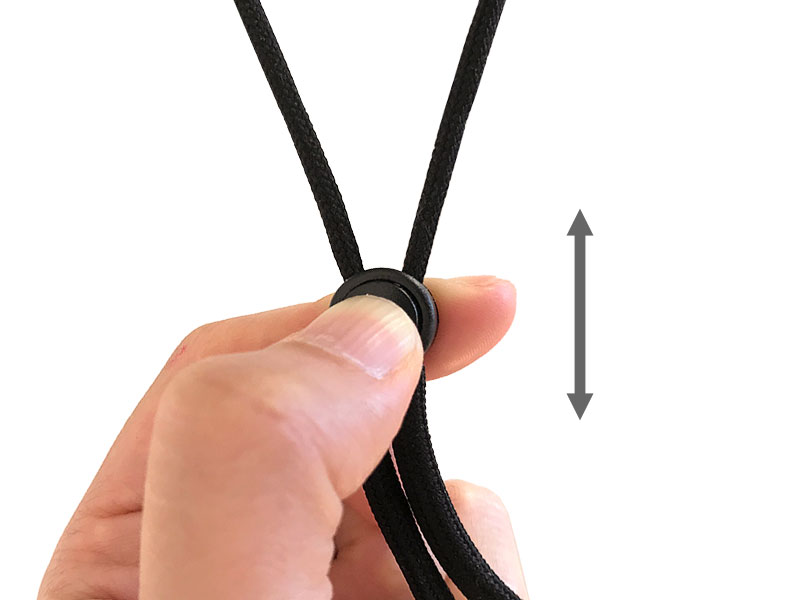 サイズは、紐に付いている丸いパーツを押して、上下させることで調節が可能です。