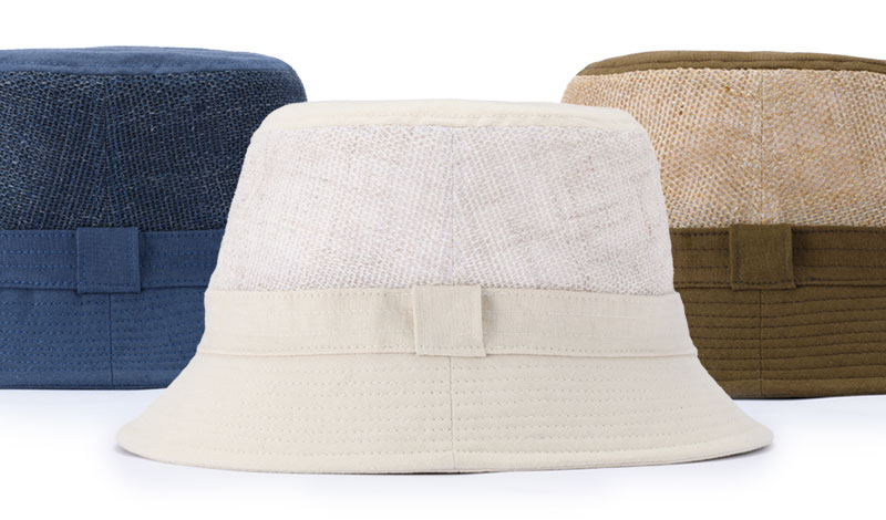 中でも麻100%のからみ織りは、風の抜ける素材として夏の帽子にかかせない生地として知られています。そんな麻100%のからみ織りをメインに、涼しげな帽子を企画しました。