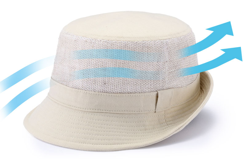 中でも麻100%のからみ織りは、風の抜ける素材として夏の帽子にかかせない生地として知られています。そんな麻100%のからみ織りをメインに、涼しげな帽子を企画しました。