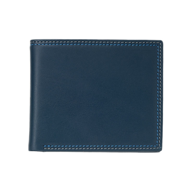 シンプルで使いやすい小銭入れ付き2つ折り財布、色の異なる2重のステッチラインがデザインのアクセント。