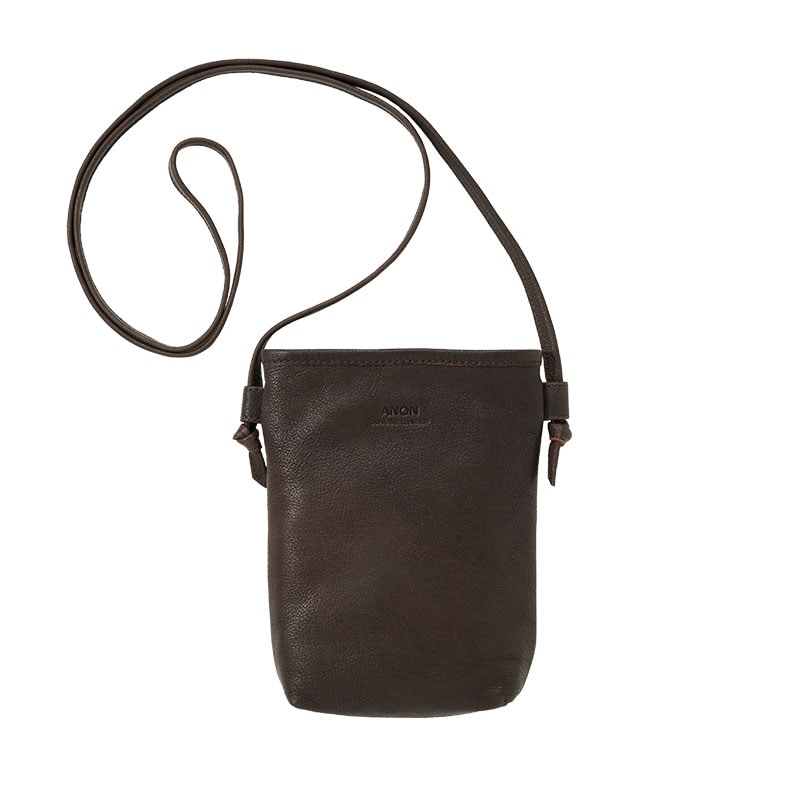 すべて本革(ゴートレザー)で作られた贅沢な縦型ミニショルダーバッグ。たすき掛けするショルダーバッグで、ベルトの長さは両サイドの結びの位置で調整可能。