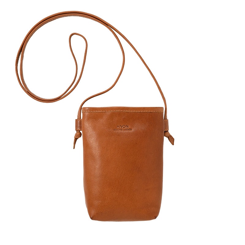 すべて本革(ゴートレザー)で作られた贅沢な縦型ミニショルダーバッグ。たすき掛けするショルダーバッグで、ベルトの長さは両サイドの結びの位置で調整可能。