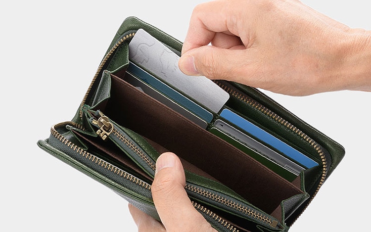 収納力抜群で、多機能なラウンドファスナーの長財布