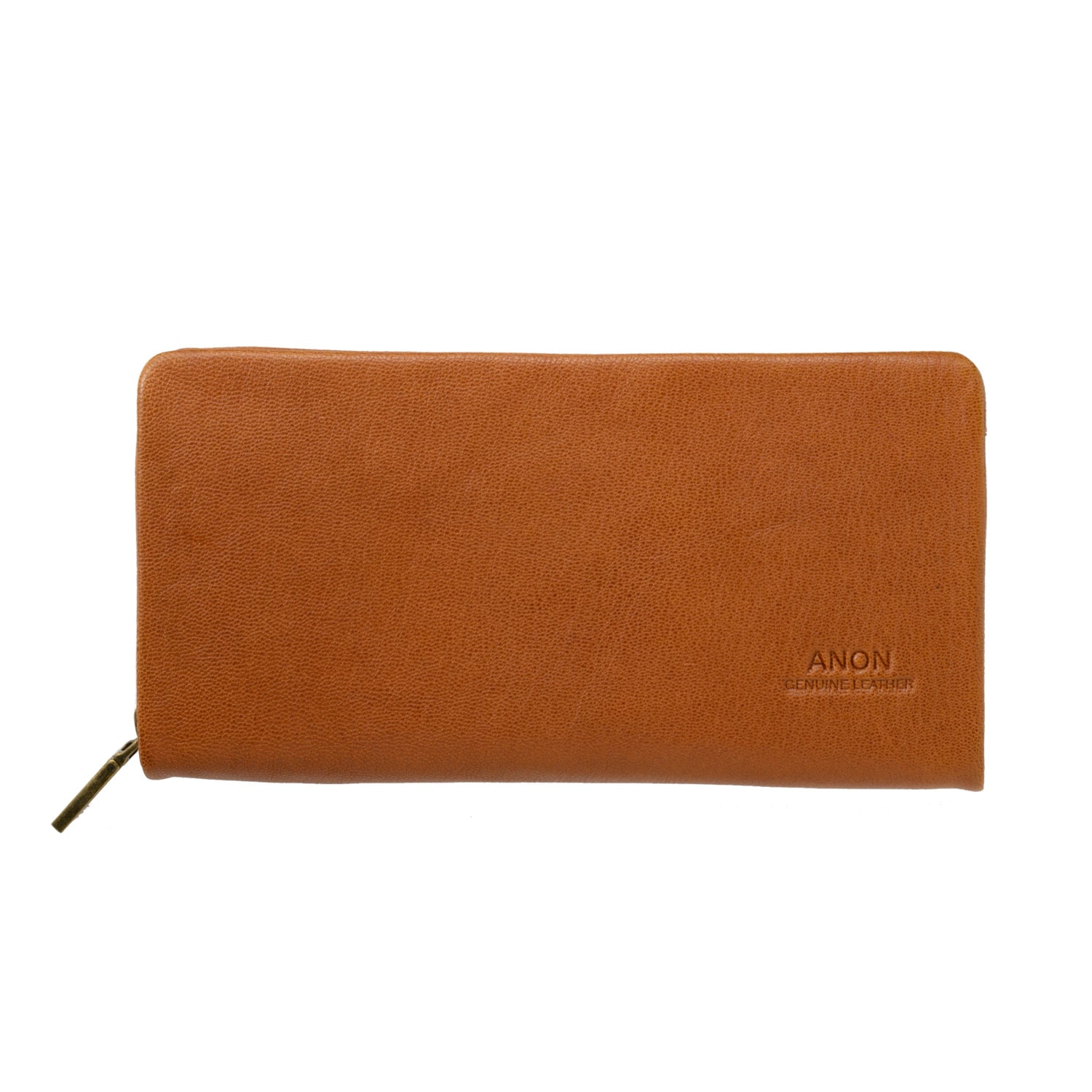ANON・ゴートレザー・袋縫いラウンドファスナー長財布・ライトブラウン