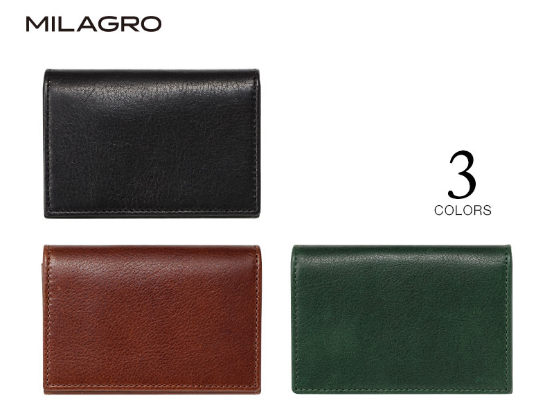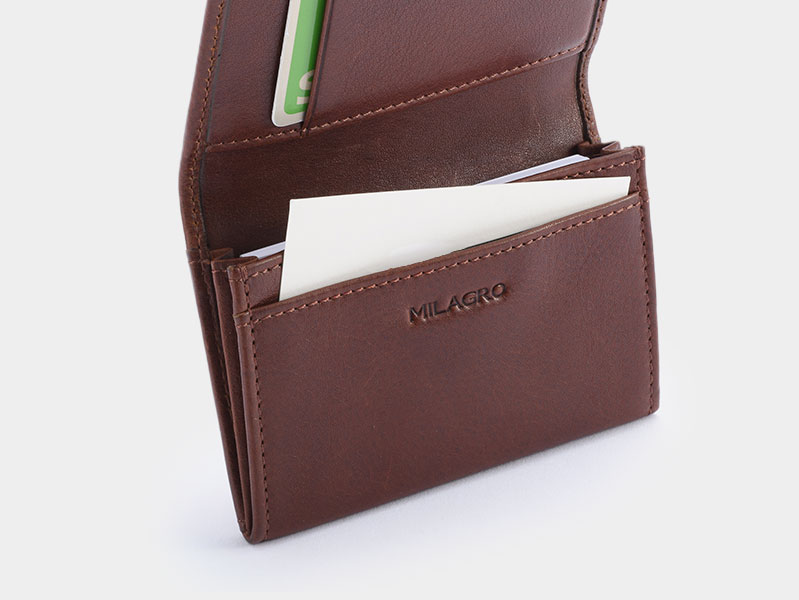 MILAGRO 牛革ソフトミリング・笹マチ名刺入れ・ダークブラウン