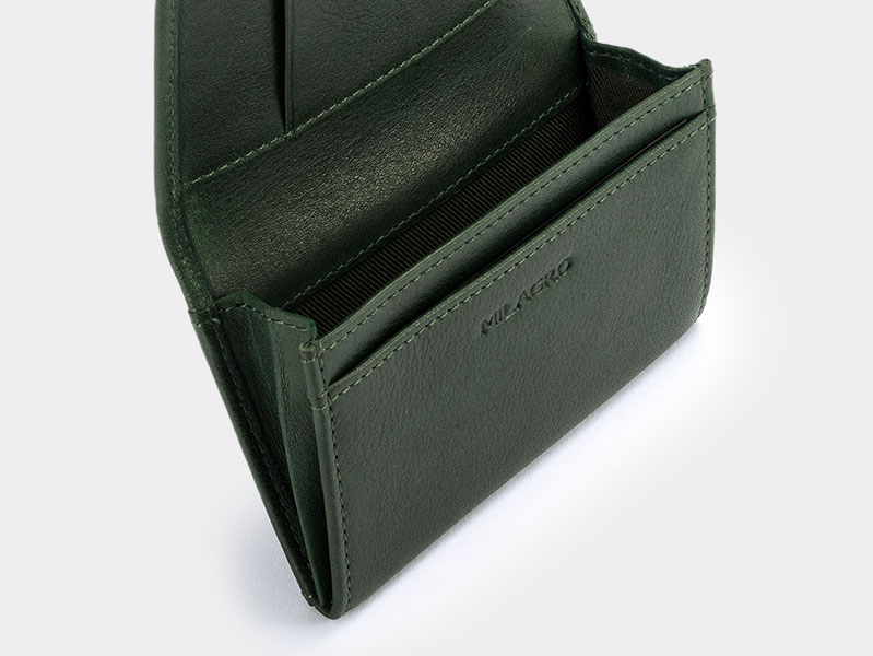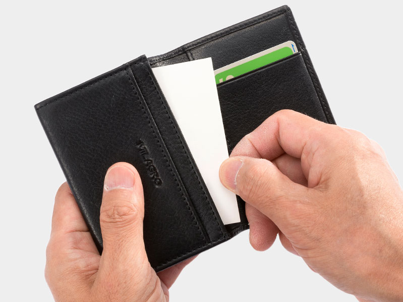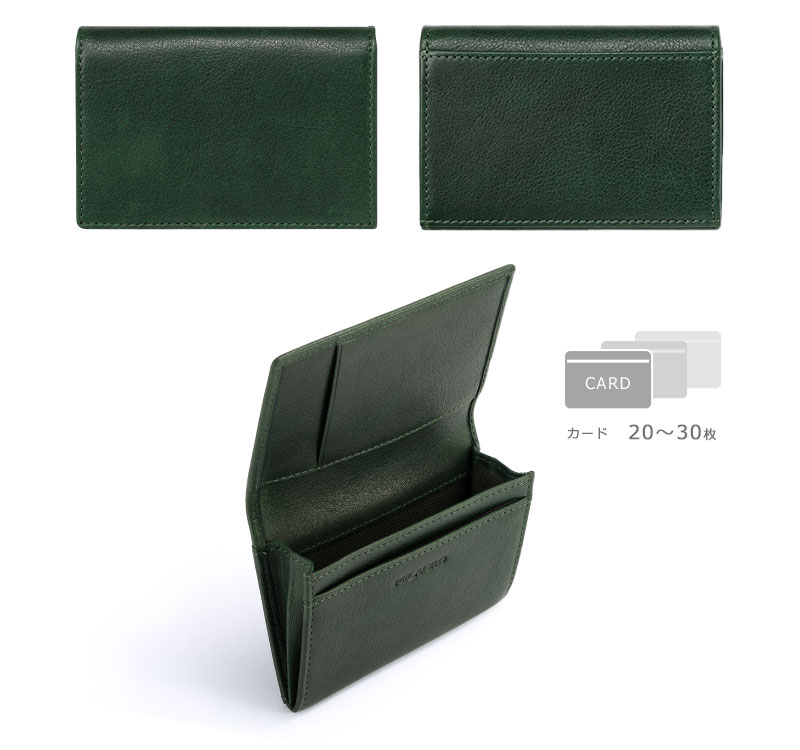 笹マチで、風琴マチのような収納部で薄くスマートな名刺入れ。 柔らかさとシワ感を出すためにミリング加工を施した牛革を使用。
