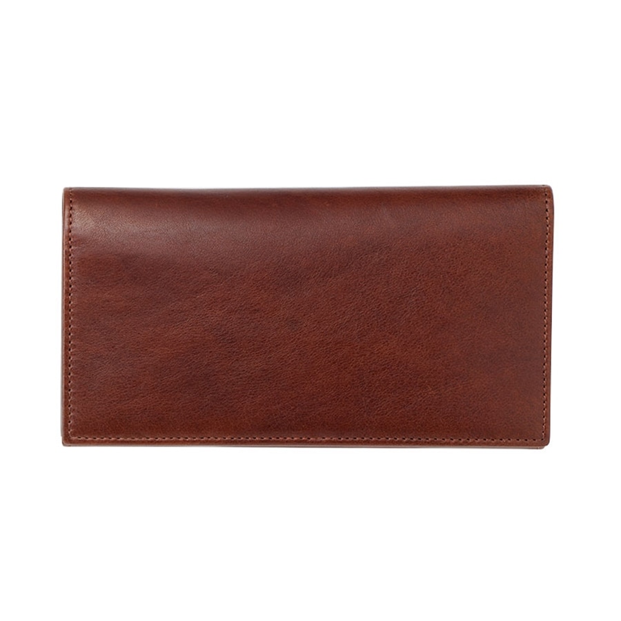 「人間工学」的な発想から使い勝手が良く、かつ横幅がスリム化した新サイズの長財布。柔らかさとシワ感を出すためにミリング加工を施した牛革を使用。