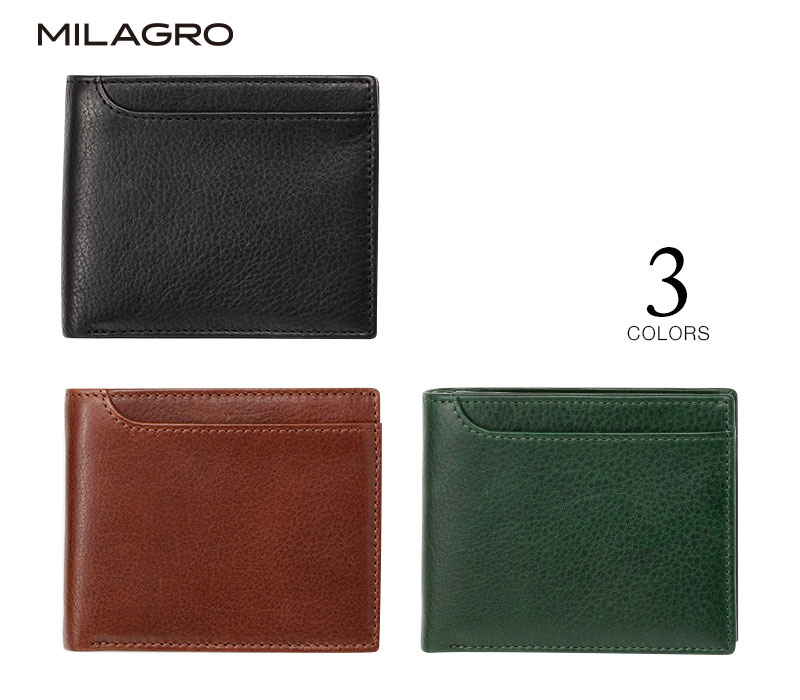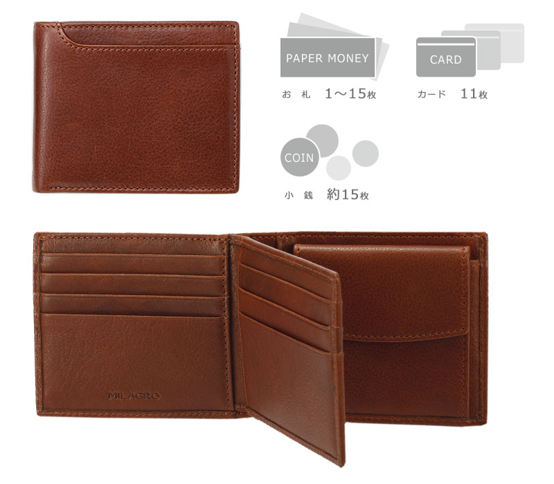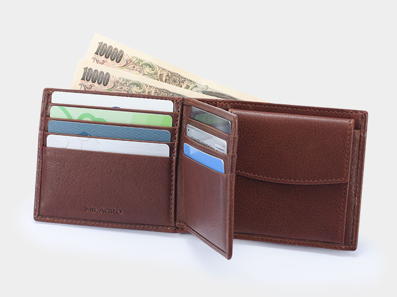 MILAGRO 牛革ソフトミリング・ベラ付き2つ折り財布・ダークブラウン