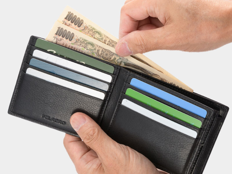内側:札入れ×1(仕切りあり)、小銭入れ×1、カードポケット×10、オープンポケット×5