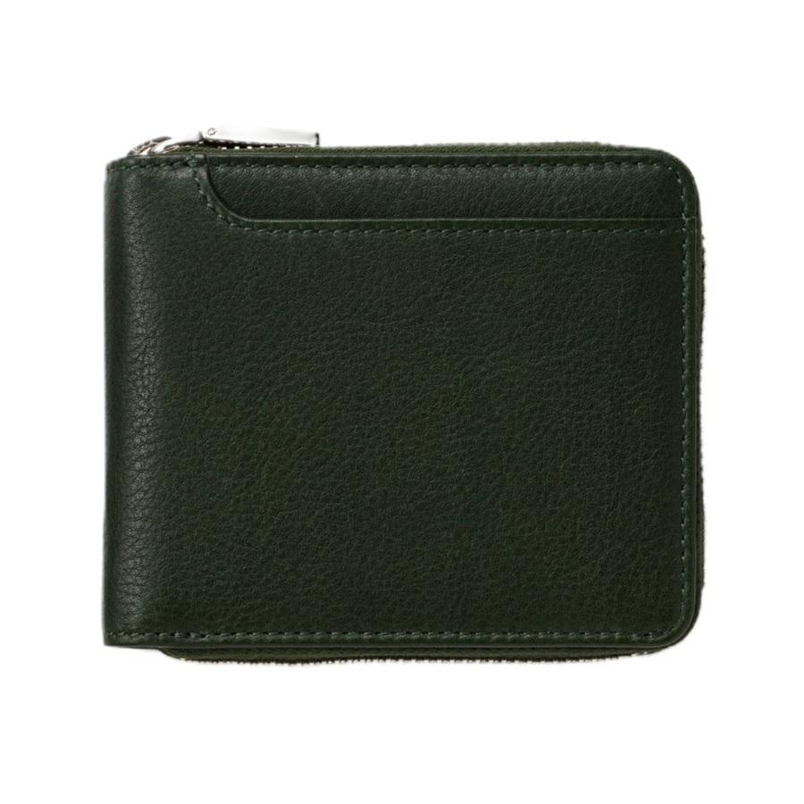 MILAGRO 牛革ソフトミリング・ラウンドファスナー2つ折り財布・グリーン