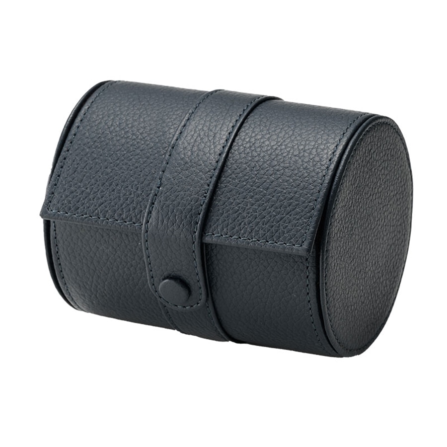 円柱型で、横にして収納し、ホックで留める仕様のネクタイケースです。中にはちょうど1本のネクタイが収納できるスペースがあり、付属で時計用クッションが付いています。ビジネスマンの必須アイテムとして喜ばれるアイテムです。