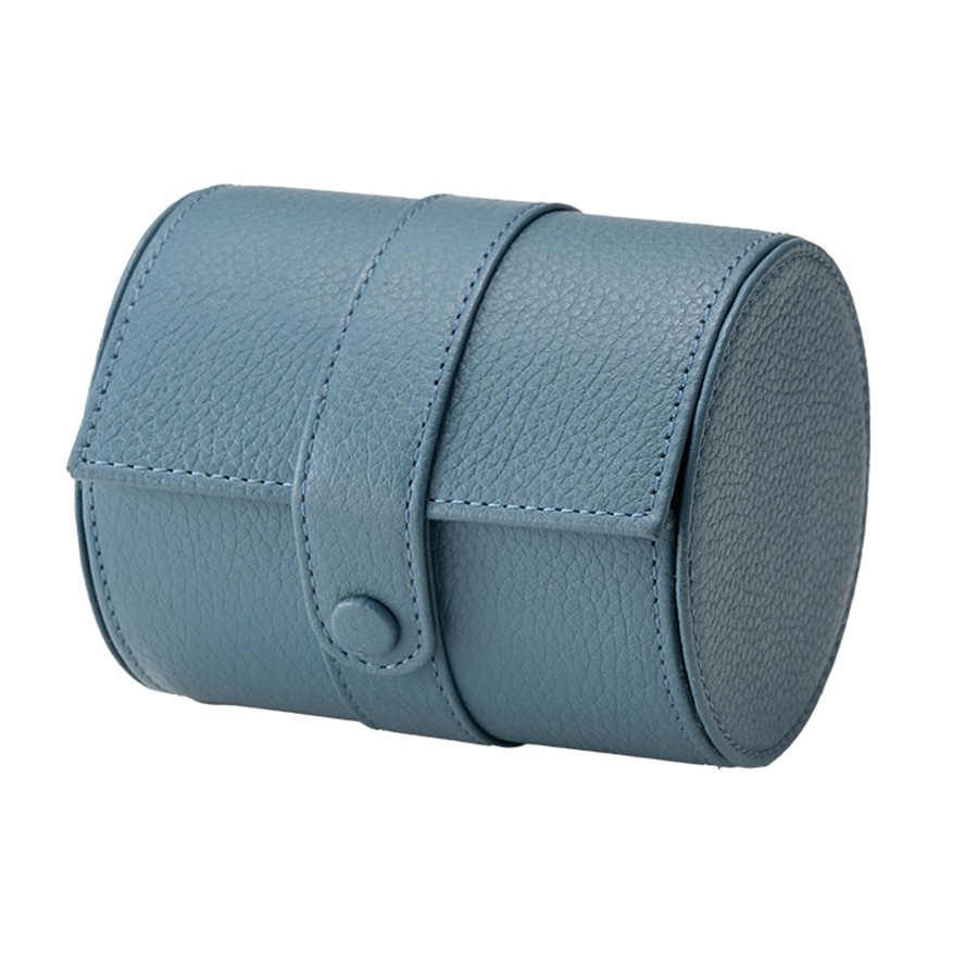 円柱型で、横にして収納し、ホックで留める仕様のネクタイケースです。中にはちょうど1本のネクタイが収納できるスペースがあり、付属で時計用クッションが付いています。ビジネスマンの必須アイテムとして喜ばれるアイテムです。