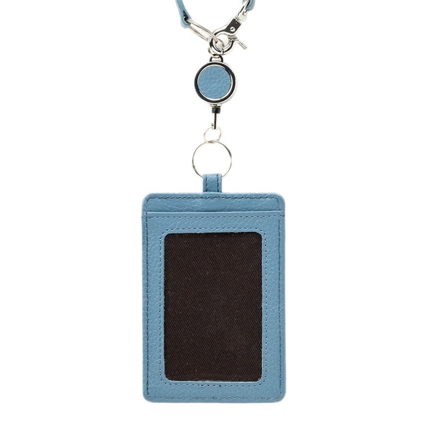 MILAGRO シュリンクレザー・リール付き縦型パスケース・サックスブルー