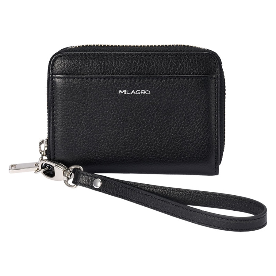 MILAGRO シュリンクレザー・ストラップ付きラウンドジップカードウォレット・ブラック