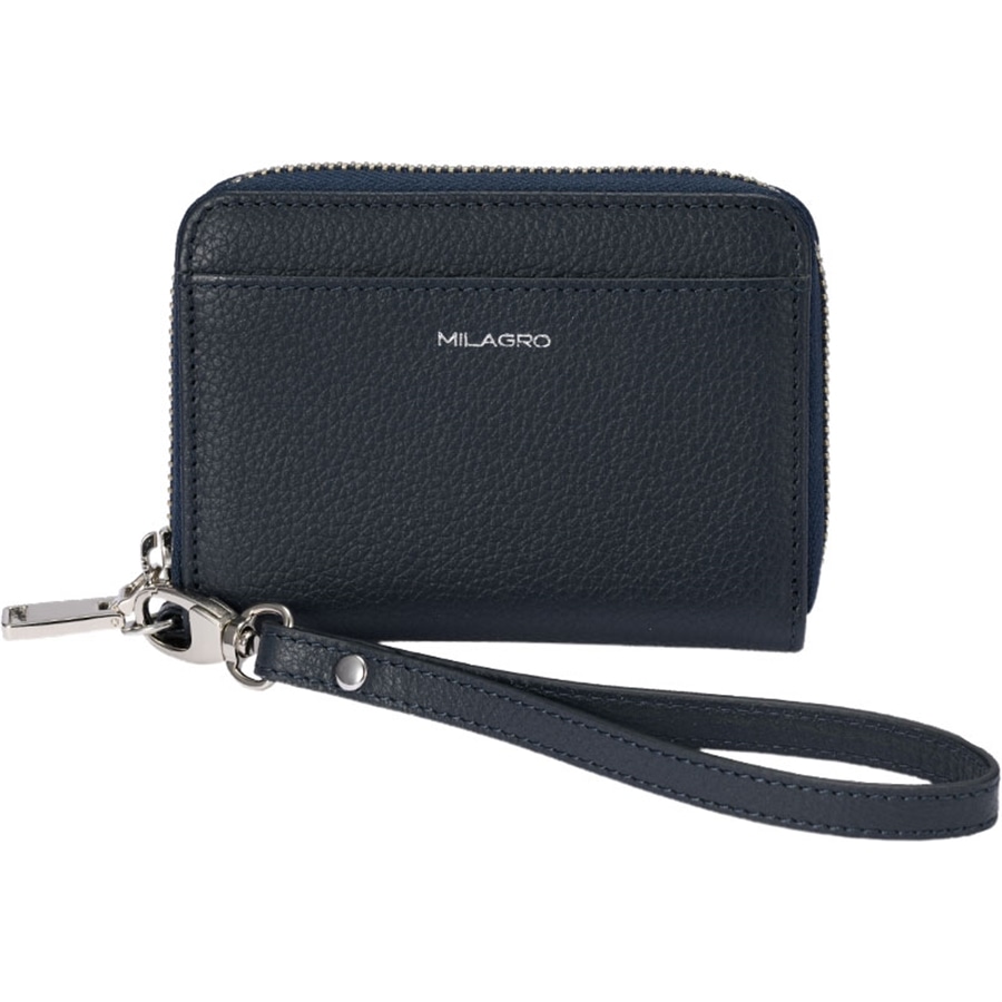 MILAGRO シュリンクレザー・ストラップ付きラウンドジップカードウォレット・ネイビー