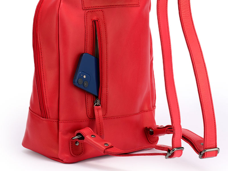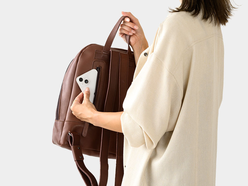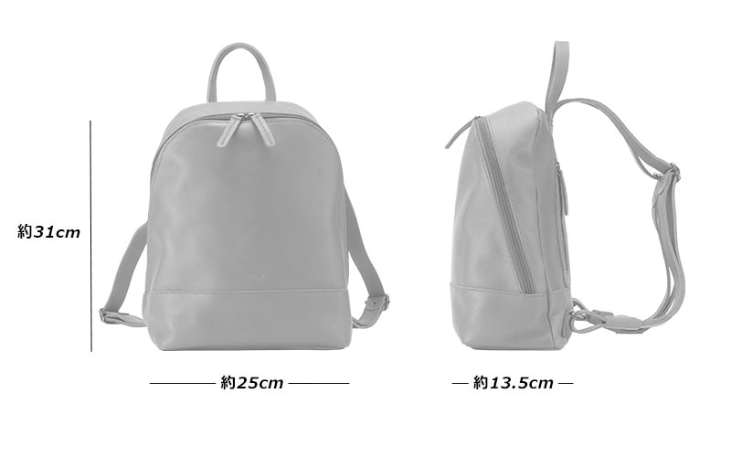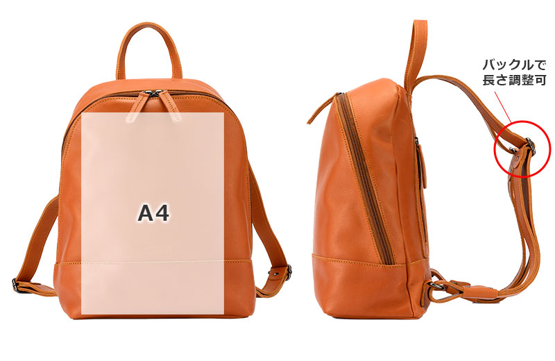 すべてレザーで作った贅沢な作り。女性でも使いやすい小さめサイズのリュックです。