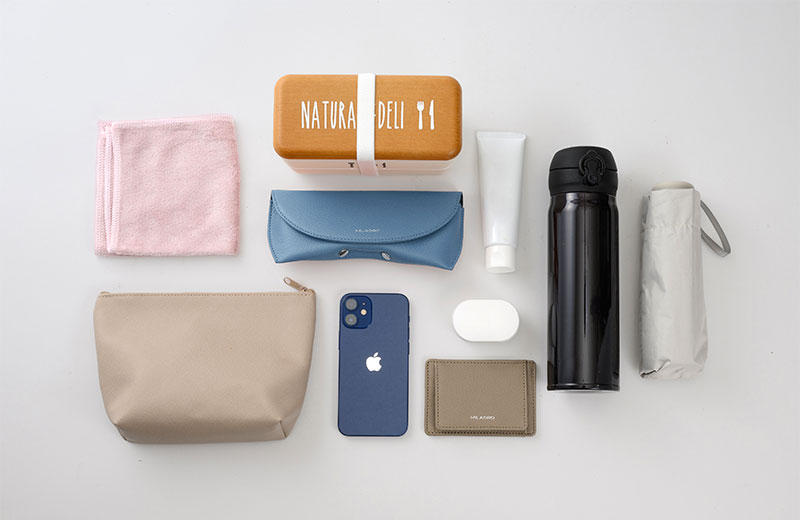 中には、しっかりと収納できるスペースがあるので、財布・化粧品・水筒・お弁当箱など、普段使いのものがまるっと入ります。ちょうどA4サイズの紙が縦に入るサイズ感で、容量は約10Lです。