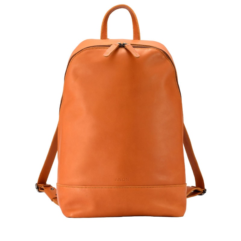 素材はナチュラルレザーの牛革を使用。柔らかく手触りの良い革で、3色のカラーバリエーションにて展開。アウトドアの一般的なナイロン製のリュックがレザーになったデザインで、少し縦長のバックパックです。男女兼用デザインで、ノートPCも収納できるON/OFF対応。シンプルなだけにフルレザーの存在感があり、革感たっぷりでお洒落です。