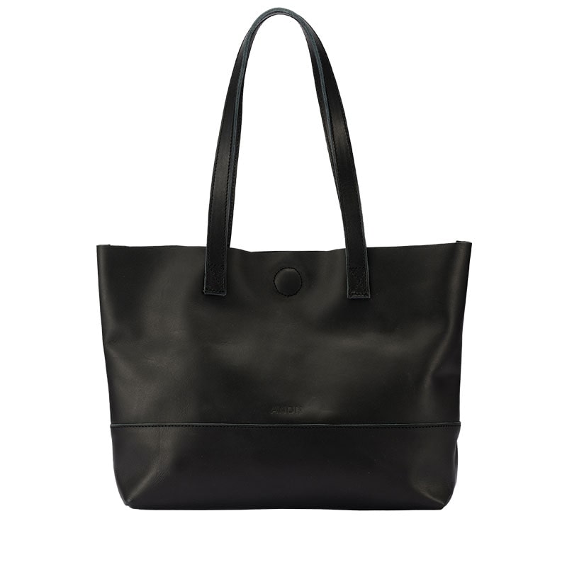 素材はナチュラルレザーの牛革を使用。柔らかく手触りの良い革で、5色のカラーバリエーションにて展開。裏張りのない厚みのある1枚革仕立てのシンプルな横型トートバッグ。サイズはA4サイズの書類が入るオーソドックスなサイズ。肩掛けしてしても良し、手提げで使うこともできます。