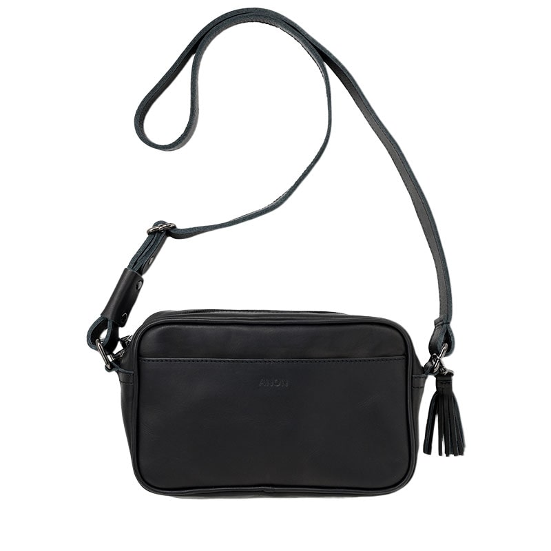 ANON ナチュラルレザー・スクエアショルダーバッグ・ブラック