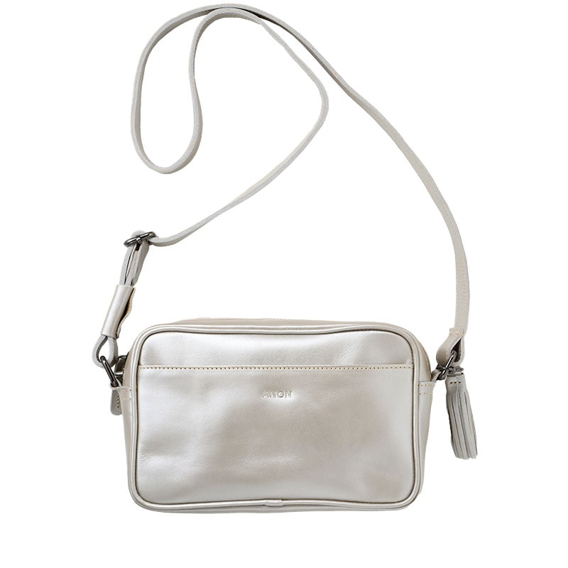 ANON ナチュラルレザー・スクエアショルダーバッグ・シャンパンゴールド