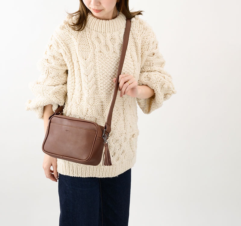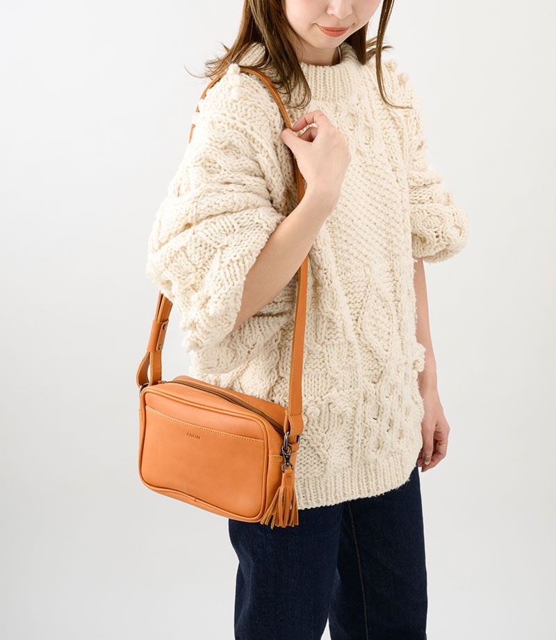 ANON ナチュラルレザー・スクエアショルダーバッグ