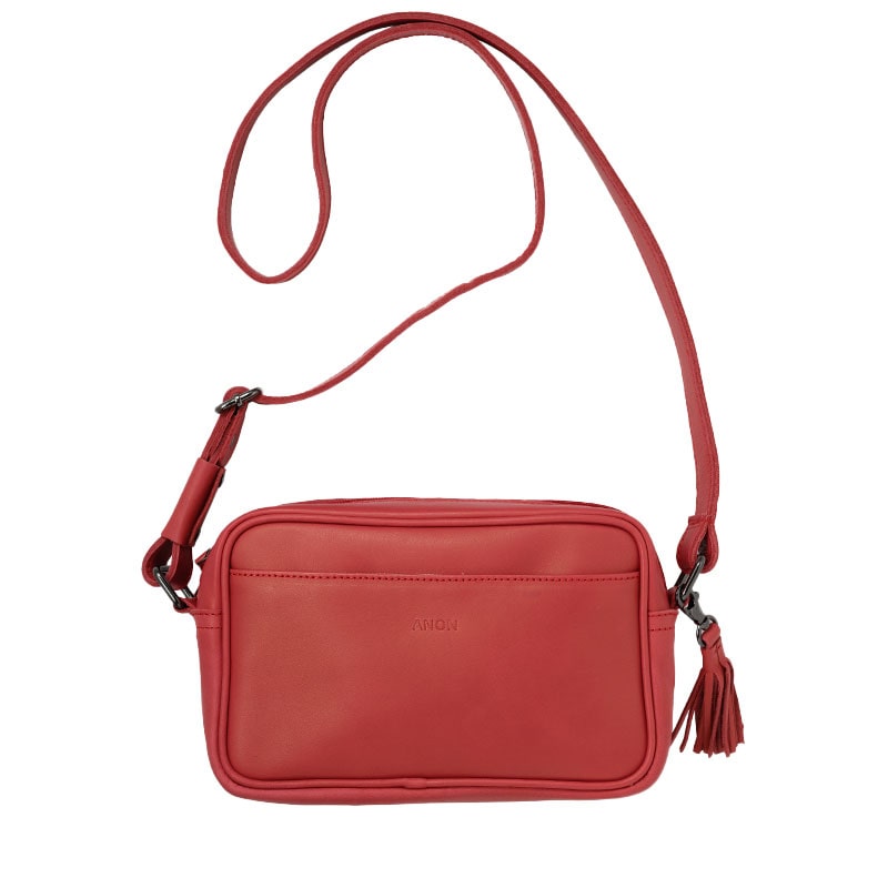 ANON ナチュラルレザー・スクエアショルダーバッグ・レッド