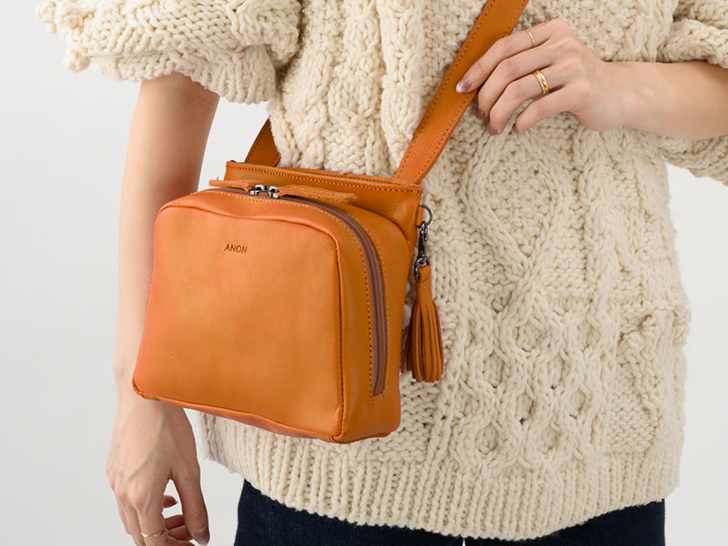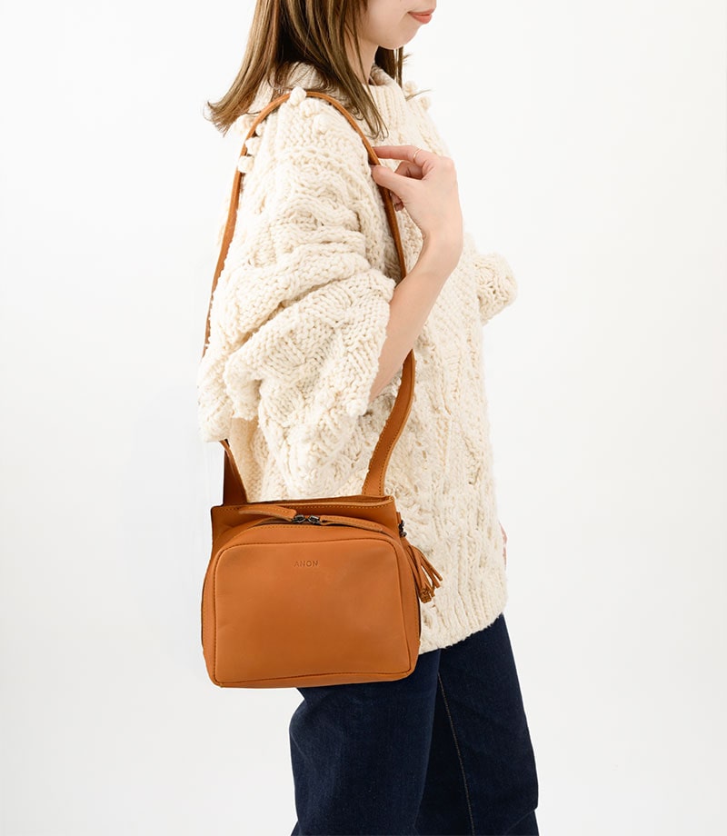 ANON ナチュラルレザー・スモールショルダーバッグ・コニャック