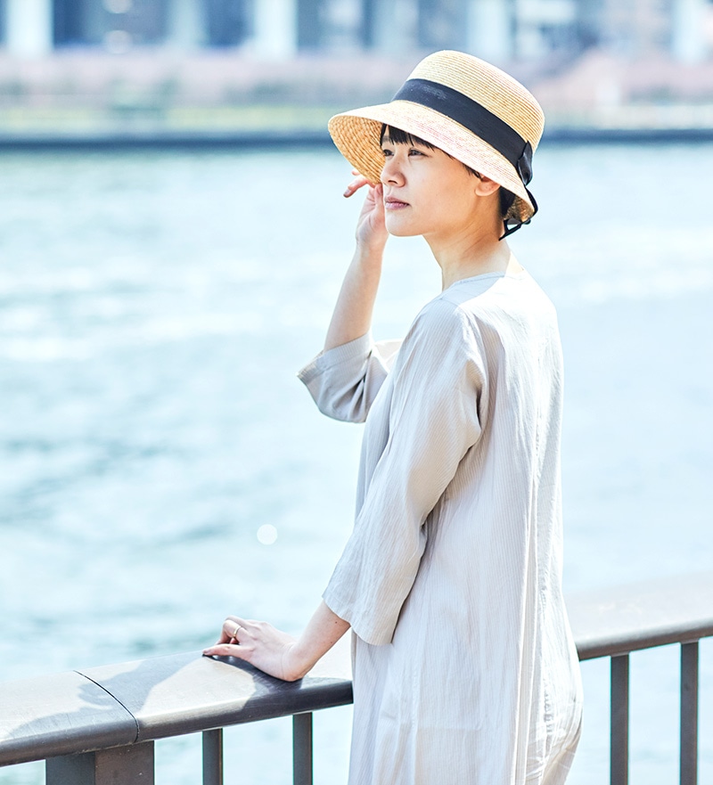 シンプルなのでスカート、ワンピースだけでなくデニムにも合わせやすいデザインです。場所を選ばず、街中、ビーチなどのリゾートでもご愛用いただける、春夏のワードローブにおすすめのファッションアイテムです。
