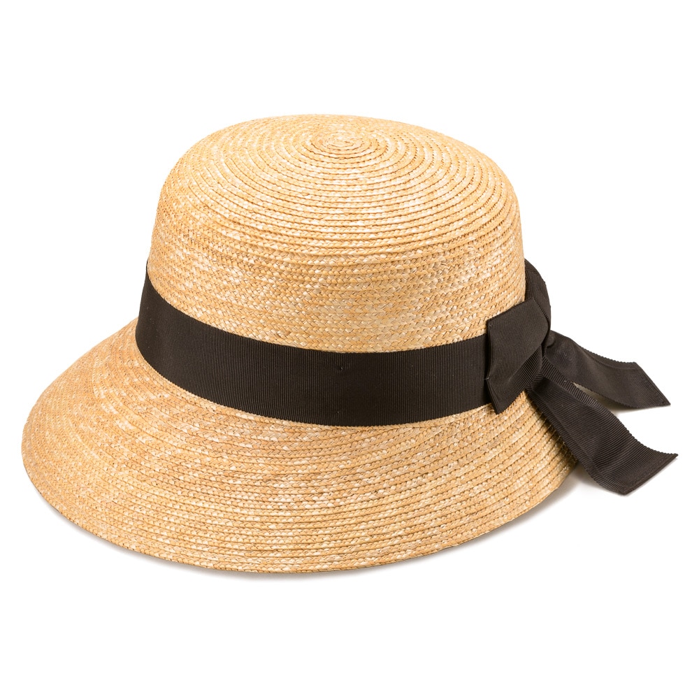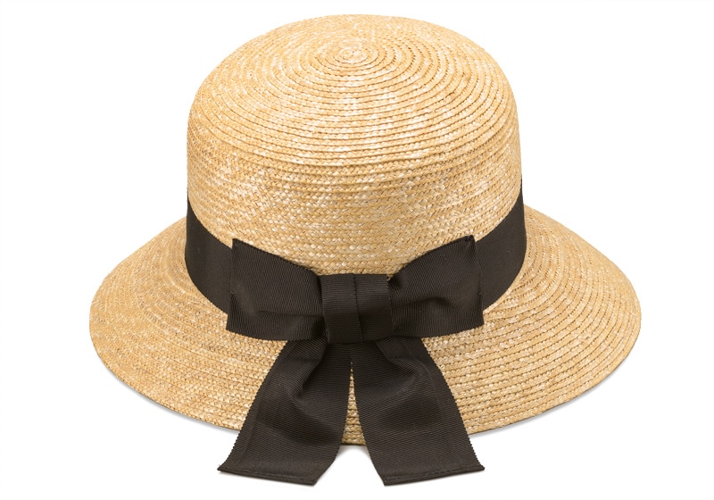麦わらのナチュラルカラーにブラックリボンの定番スタイル。落ち着いた雰囲気の中にも、太めのリボンの結び目が、かわいらしさを演出してくれます。帽体は日本人にあった木型で製造されているのでフィット感が抜群!いろいろなファッションと合わせられます。