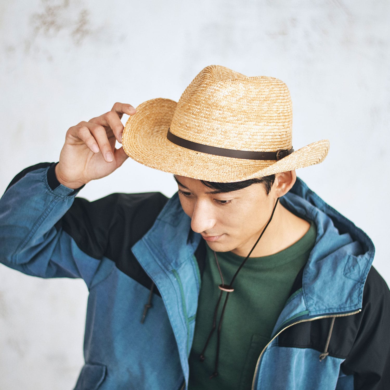 | 素 材 | 〈本体〉麦わら、牛革、綿紐、合金 〈汗止め〉ポリエステル |