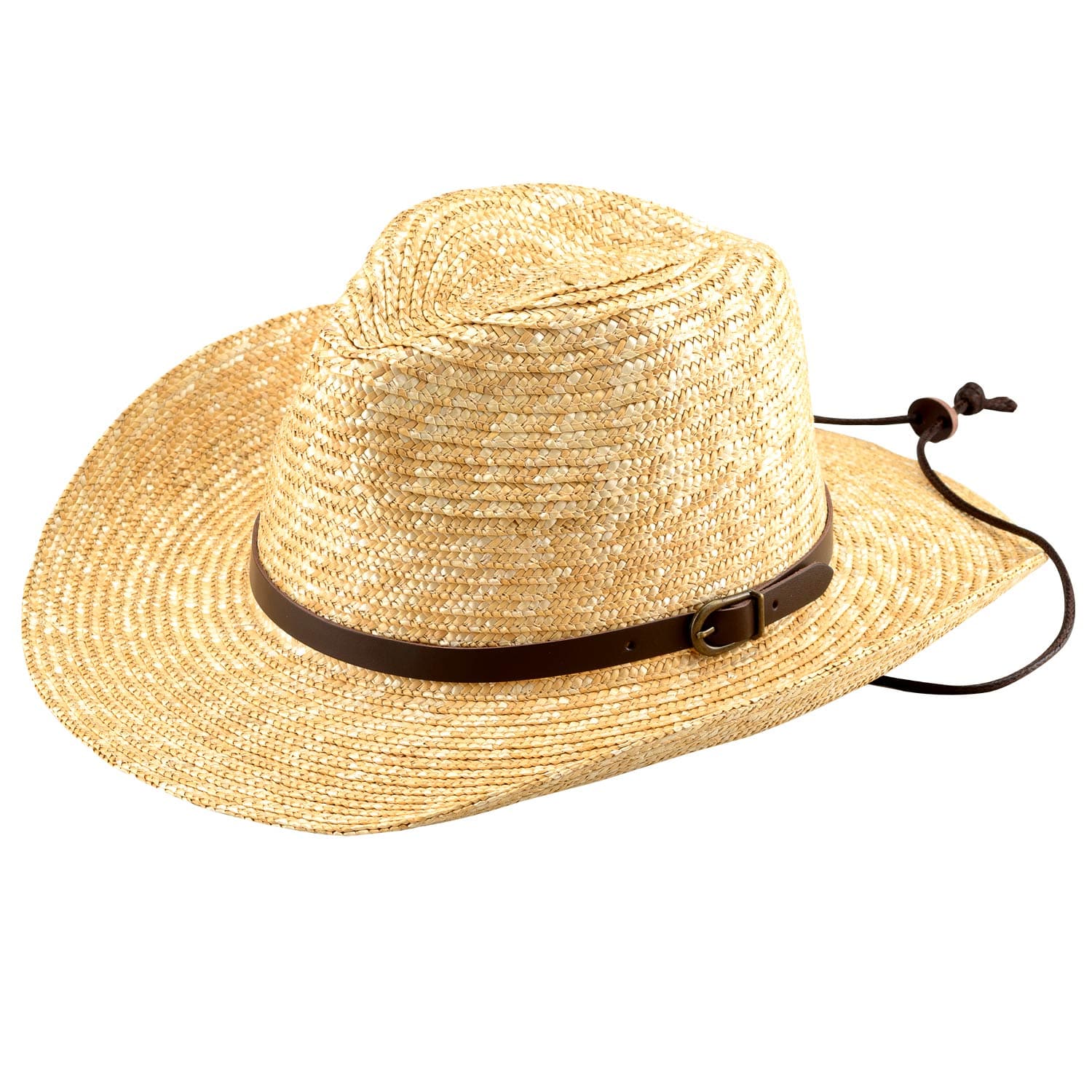 帽子には本牛革のベルトとアンティークゴールドのバックルがついており、カジュアルな中にも大人の雰囲気が漂います。夏のカジュアルスタイルにマッチする帽子です。