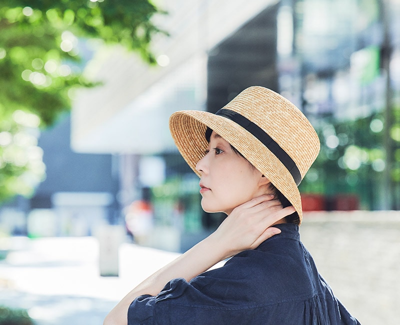 くるんと内側に丸まった大きなつばが特徴。春夏ファッションを彩る定番帽子、カサブランカです。丸みのある柔らかなシルエットが女性らしさを印象づけ、かぶるだけで映画女優のような優雅な雰囲気に。
