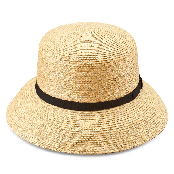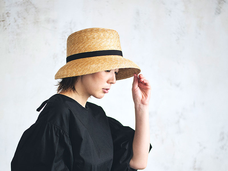 長いツバが顔全体を覆い、日差しから顔全体を守ってくれます。 細く繊細に縫われた帽体は高級感が漂い、シンプルなリボンは大人の雰囲気を醸し出します。