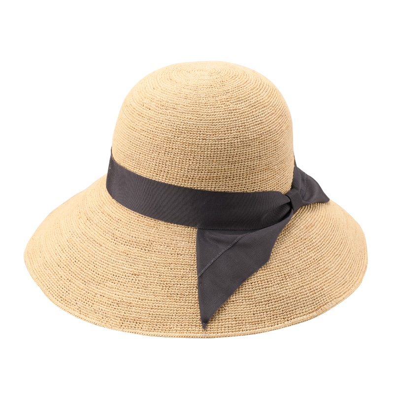 田中帽子店 Fiona(フィオナ)ライフィア つば広キャペリン帽子・グレーリボン