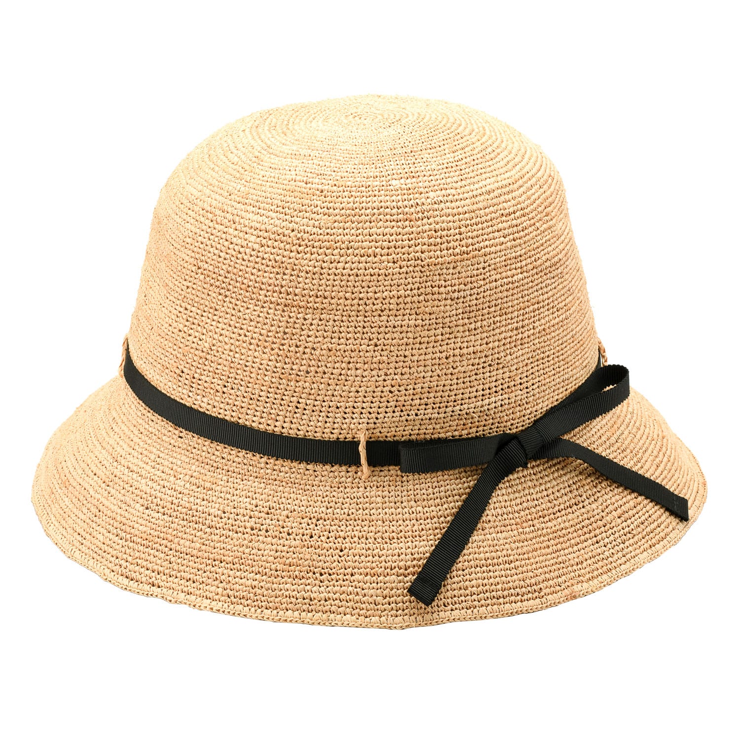 田中帽子店 Gina(ジーナ)ラフィア ショートクロッシェ・S-ブラックリボン