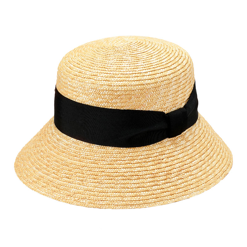 田中帽子店 Anika(アニカ)麦わら 女優帽・M-ブラックリボン