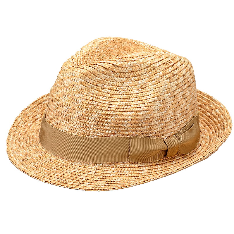 紳士用ハットの定番、通称"ボルサリーノ型"の麦わら中折れハット。