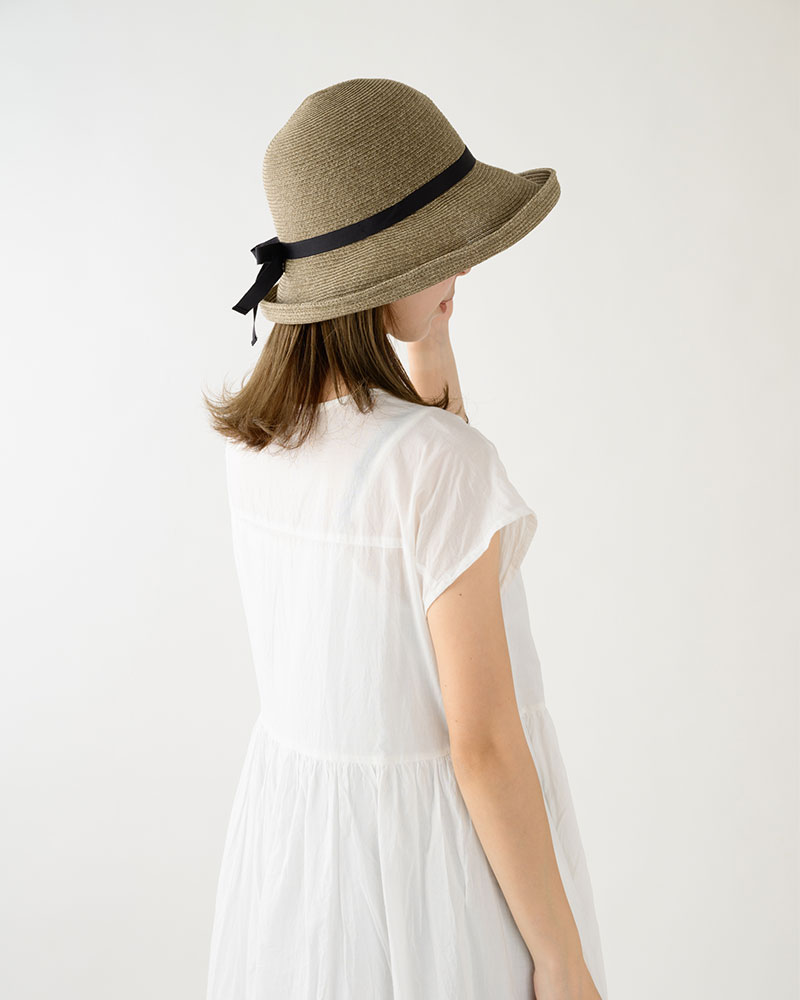 麻のようなシャリ感と軽さを実現した極細ペーパー素材を使用し折り畳んで持ち運ぶことが出来るつばの広い帽子にしました。