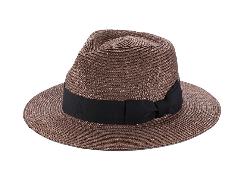 街中でかぶれる帽子で、しかもしっかりと日除けしてくれる帽子を作りました。つばが長くても格好よく見えるように細麦を使用。細く縫われた帽体はかぶり心地が良いだけでなく、見た目もエレガントです。また、太めのリボンがクラシックな感じを演出し、まさに大人の紳士帽です。