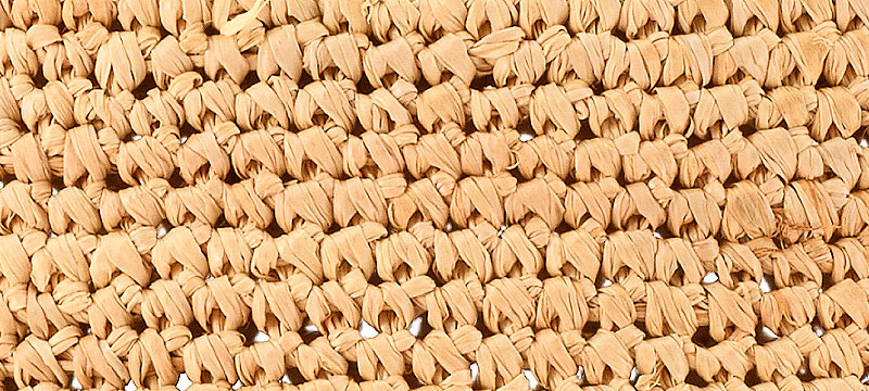 ラフィアは、天然素材で、軽量さと柔らかさが特長です。麦わらと違い、柔らかい葉を使用しているため加工がしやすく、編むことが出来ます。「軽さ」と「柔らかさ」によって、多くのお客様に支持されています。見た目も上品で、大人のワードローブとして夏を演出してくれる素材です。