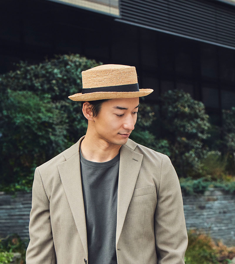 | 素 材 | 〈本体〉天然草(ラフィア) 〈グログラン リボン〉レーヨン 〈汗止め〉ポリエステル 〈その他〉ポリエチレン、他 |