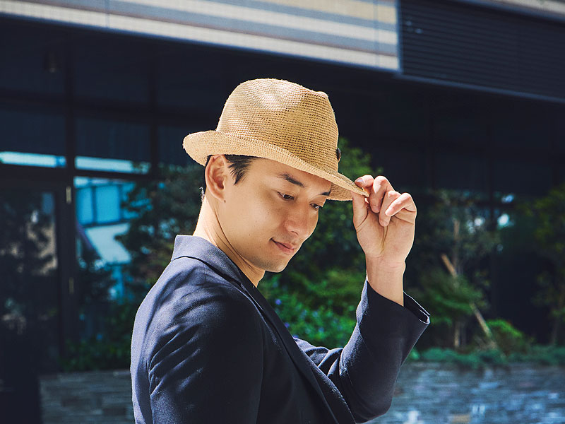 つば先にはアレンジと型崩れ防止のためにワイヤーが入っているのも特長で、少し前つばを下げるだけで少しフォーマルな感じにもなります。