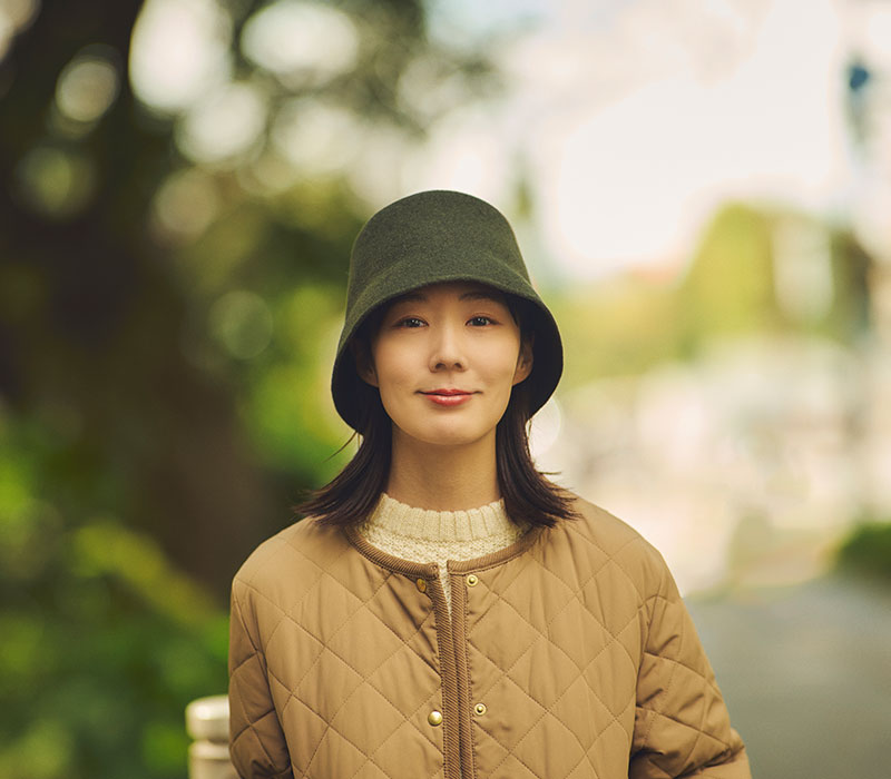 国内で紡績したラムウールを使用。ツバが短く、シルエットが可愛い人気のバケット型。