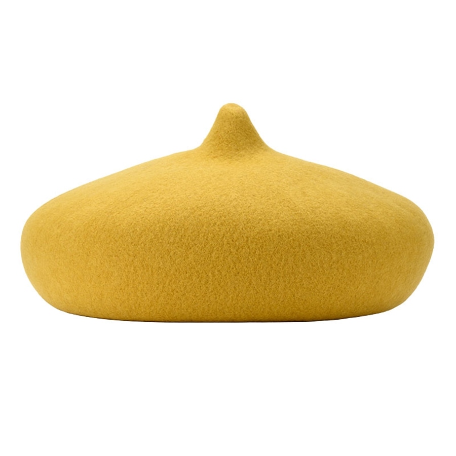 ベレーのトレードマークでものあるチョボ部分をとがらせ、人気の「キスチョコ」のような形に仕上げた帽子です。丸くて深さのあるシルエットに、可愛らしい「とんがり」がアクセントになっています。